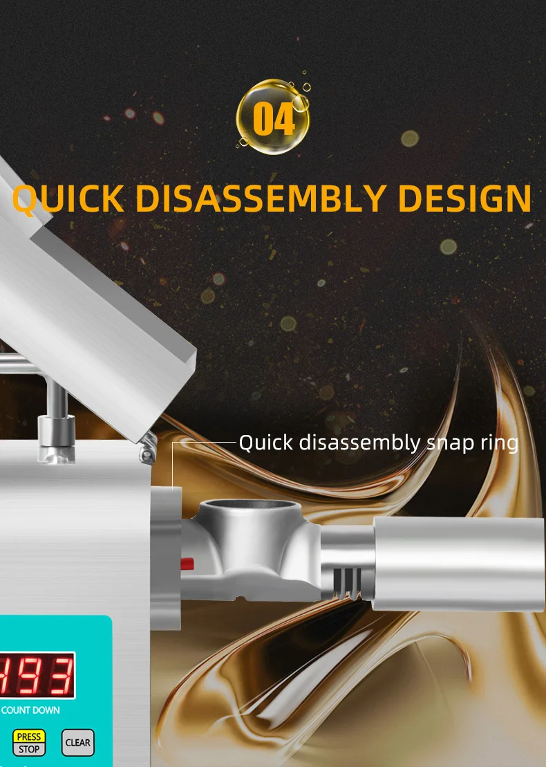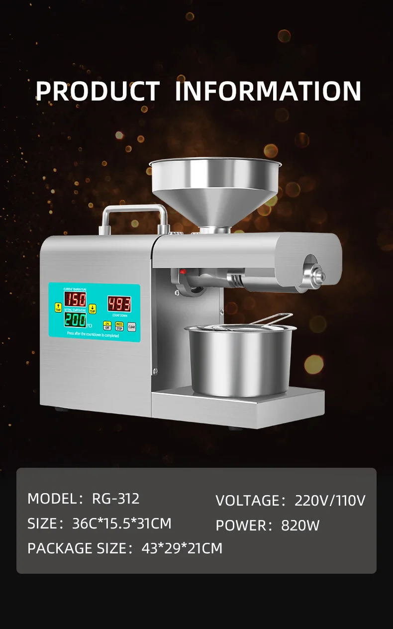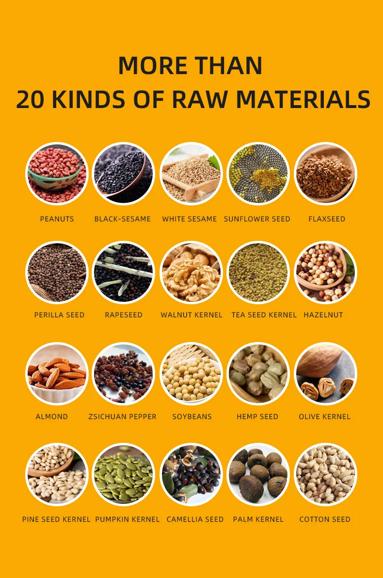 4. Under the cold-pressing mode of the material, the normal temperature of the oil coming out is around 40° C, and the nutritional components will not be lost.