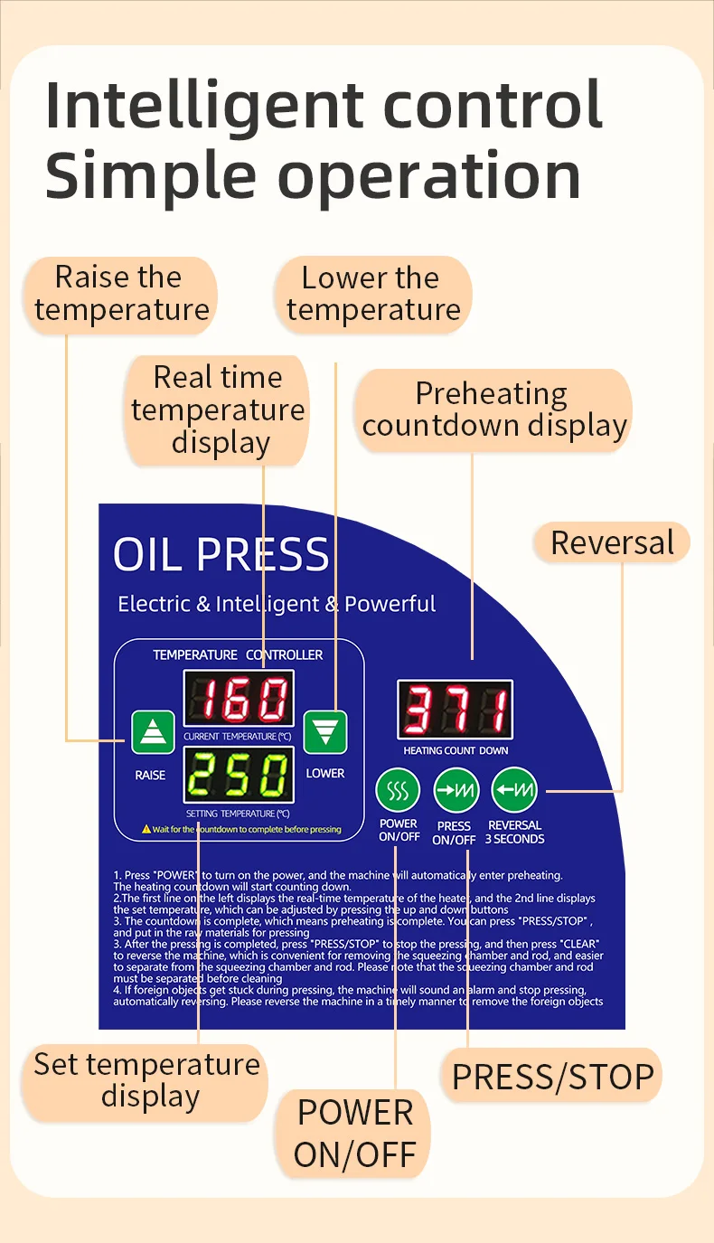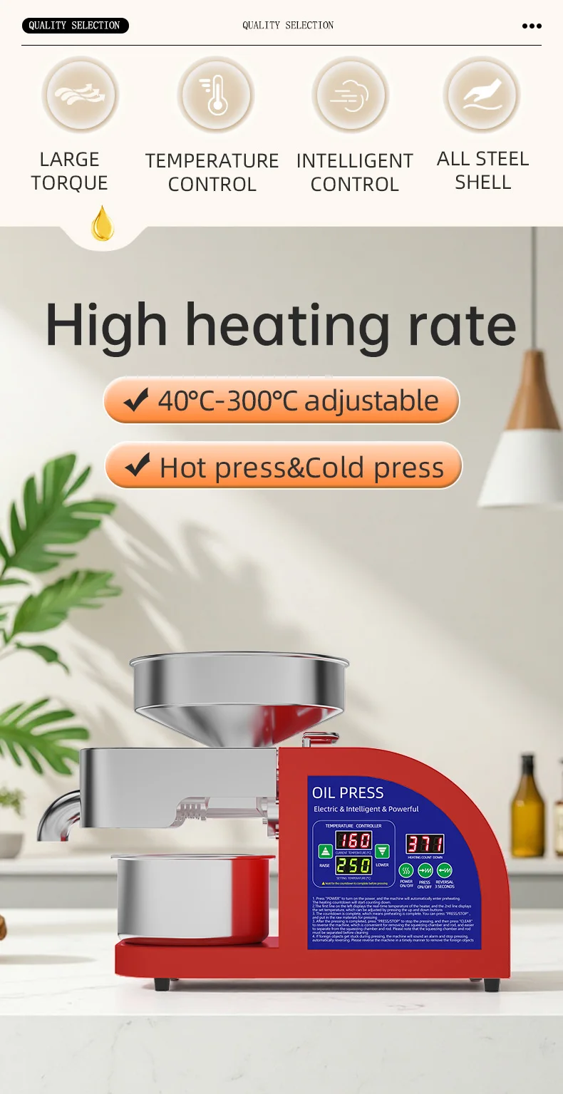 DIVEDEER Oil Press Machine Intelligent Temperature Control for Pressing Peanut Black Sesame Flaxseed Rapeseed Walnut Kernel X9