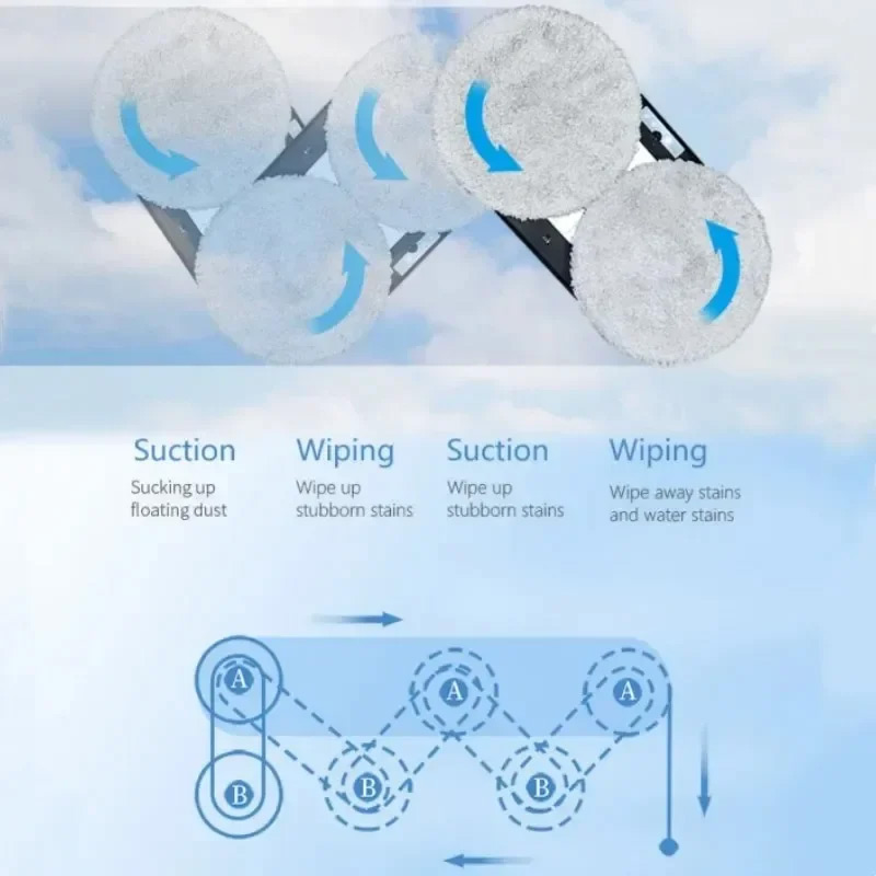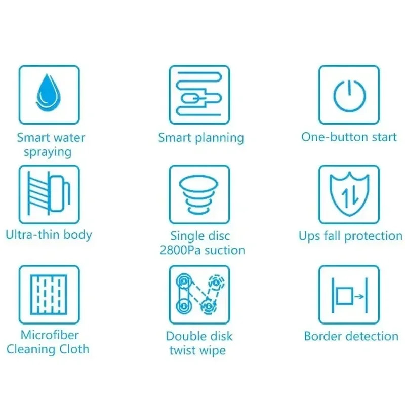 1. Wait 20 seconds after starting up until the blue light stop flashing,Then start working. Because the robot need 20sec to detect the glass plane.